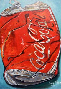 2020Platgetrapt blikje cola, geinsprireerd door Tjalf Sparnaaij met zilveren lijst.